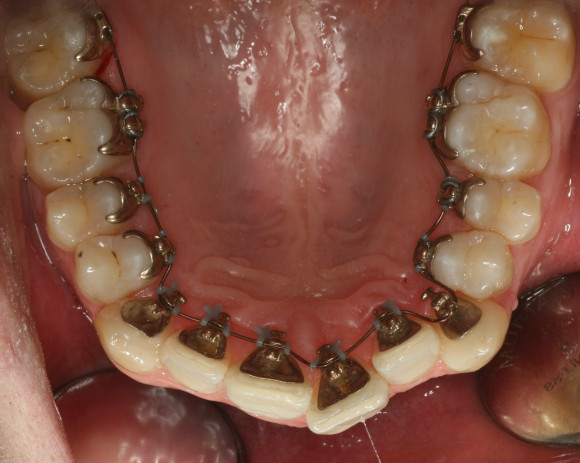 Für bestimmte Patienten sind feste Zahnspangen das bessere Therapiemittel. Die Brackets werden individuell für jeden Patienten angefertigt und mit einem spezielle Kleber auf den Zähnen fixiert. Eine Bogensequenz von unterschiedlichen Drahtbögen bringt die Zähne in die gewünschte Position. Von Aussen ist diese Form der Zahnspange nicht sichtbar. Hiermit können nahezu alle Zahnbewegungen durchgeführt werden.